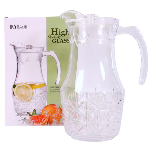 GLASS JUG W/LID CLEAR W/DESIGN