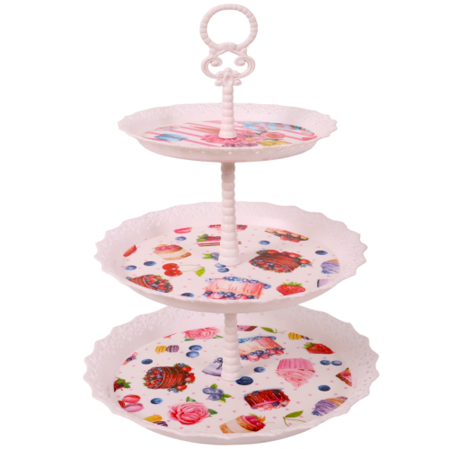 PL CUPCAKE HOLDER 3TIER LACE EDGES