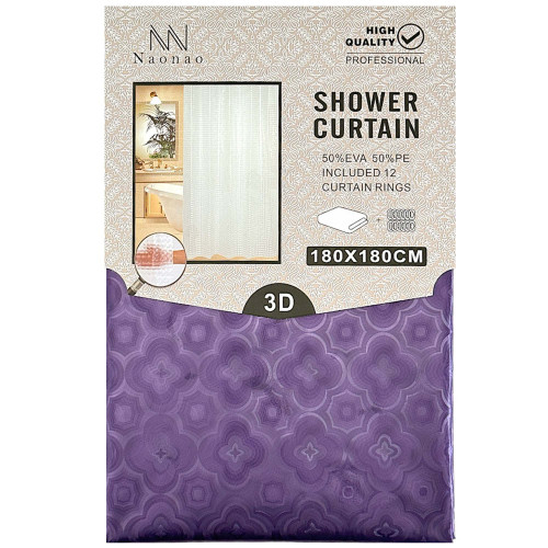 • SHOWER CURTAIN 180X180CM PLAIN W/FLOWER