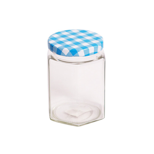 GLASS JAR HEX 8CM W/LID
