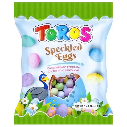 Toros Speckled Eggs Chewy Jelly with Chocolate Coated Crisp Candy Shell 125g