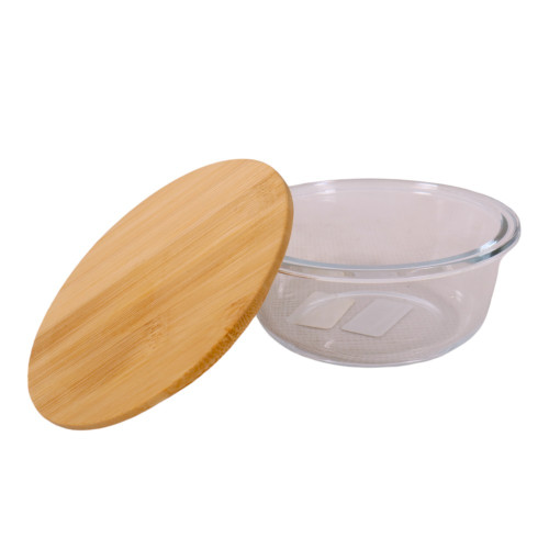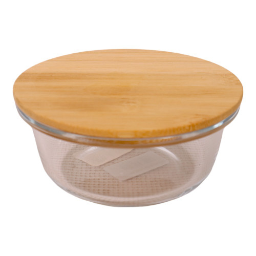 GLASS BOWL 18CM W/WOODEN LID ROUND