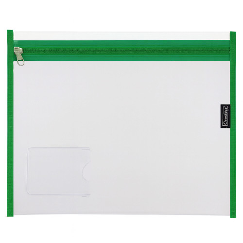 BTS BOOK BAG A4 CLEAR W/GRN ZIP CROXLEY